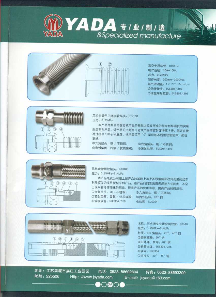 秉天時(shí) 籍地利 仰人和 虔誠一個(gè)永恒的理念,創(chuàng)新永續(xù).百諾不如一信,亞達(dá)人堅(jiān)持以信為本,視客戶如同上帝,把對(duì)信譽(yù)的追求,體現(xiàn)在嚴(yán)格的質(zhì)量控制和完善的客戶服務(wù)上,讓客戶百分之百滿意是亞達(dá)人不變的信念。 本廠系ISO9001質(zhì)量認(rèn)證企業(yè)、計(jì)量合格企業(yè)。本廠專業(yè)致力于生產(chǎn)不銹鋼金屬波紋軟管、超高壓、高壓膠管、波紋管補(bǔ)償器(膨脹節(jié))、立式、臥式、冷卻器。本廠產(chǎn)品具有承受壓力高、彎曲半徑小、抗疲勞性能強(qiáng)、使用壽命長(zhǎng)等特點(diǎn)。廣泛應(yīng)用于電力、石化、冶金、水泥建材、工程機(jī)械、礦山及液壓系統(tǒng)。產(chǎn)品暢銷全國各地。 今日亞達(dá)之成功源自諸多客戶的厚愛,明天的輝煌更離不開您對(duì)我的支持與信賴。查看更多>>